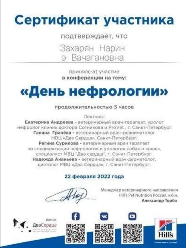 Сотрудники на все вопросы ответили по поводу почечной недостаточности у кота Барсентия, спасибо им большое. Доктор прекрасная, грамотно оказала услугу, которая действительно помогла.