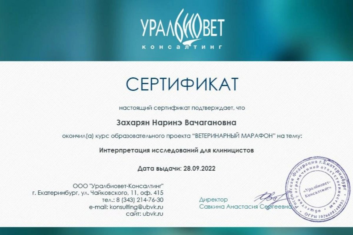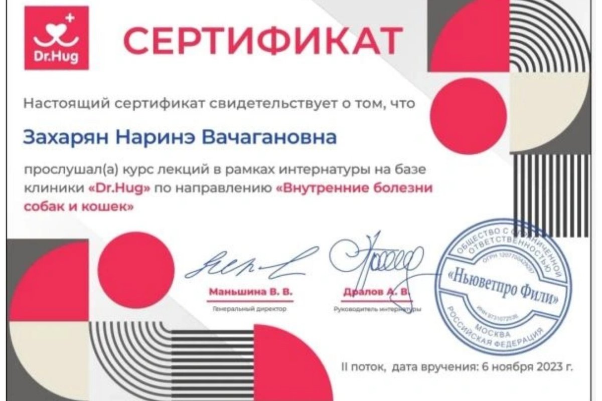 Я выбрала эту клинику после того, как прочитала много положительных отзывов о дерматологе Наринэ Вачагановне Захарян. Пришла с кошкой, которая сильно чесалась и вела себя беспокойно, врач сразу назначил терапию. Мне отлично провели консультацию - специалисты были внимательны, доброжелательны и всегда готовы помочь. Все мои вопросы разъяснили доступно и подробно. Для меня было важно не только понять возможный диагноз, но и узнать, как лучше лечить питомца.